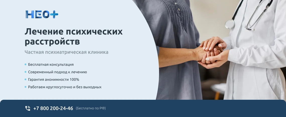 Записаться на прием к врачу-психиатру можно на официальном сайте клиники «НеоПлюс» в Троицке или по телефону ☎️ +7 (800) 200-24-46. Звоните нам, не запускайте проблему. Мы знаем, как вернуть здоровье и покой в Вашу семью!